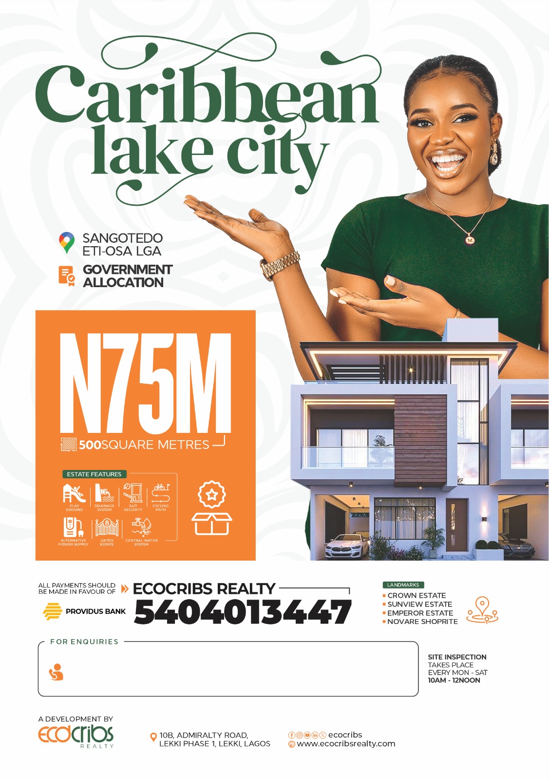 Welcome to the Caribbean Lake City, Located in the heart of Sangotedo Lagos